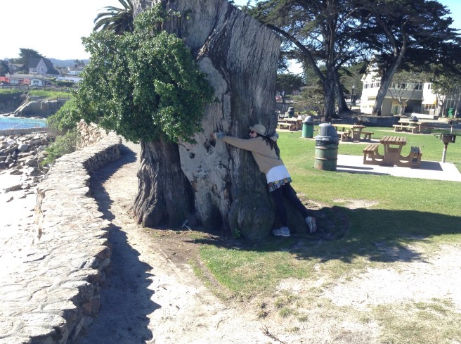 My love of plants seems to be genetic. I’ve been informed by Uncle T that Auntie Em also has a tendency to stop and admire, photograph, and investigate local flora and fauna when out and about. So along with Big Sur being famous for, well, being Big Sur, Auntie Em wanted to be sure I got to hug a Redwood. So D, Auntie Em, and I made a late afternoon trip down Highway 1 so that we could see Big Sur, and I could hug a giant tree. And I did (So did D.).