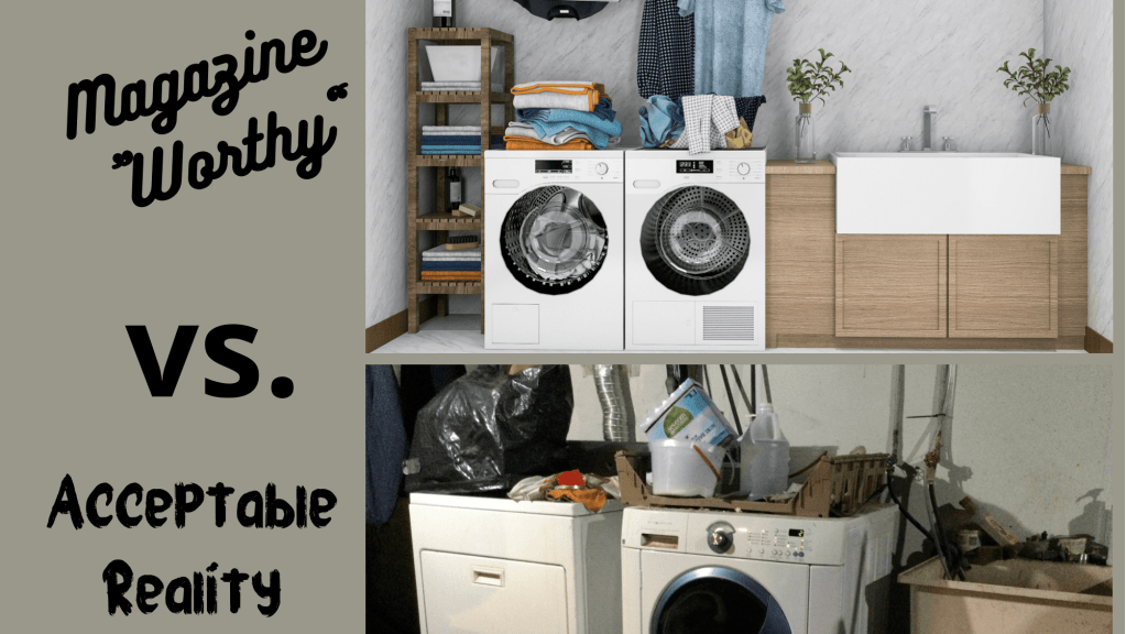 Again, I enjoy reading the occasional home/DIY magazine that’s passed along to me (and watching the occasional home improvement show while in waiting rooms). The photos are stunning, the ideas inspirational, and the recipes are drool worthy. But the goals are unrealistic in my world, even the “update on the cheap” articles. Often the remodel’s size is absurd, in my opinion. How much space do we really need? They’re impractical for my lifestyle. I rarely see anything “wrong” with the before and after photos. Dated, sure, but “wrong” and necessitating a thousands of dollars redo? And the tidiness of them is unattainable. (On a side note, they always seem to be financially secure white families, but that’s a whole other nut to crack.)
