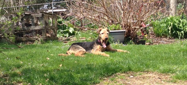 Once again, ( "still" might be the better phrase), life is crazy around our urban plot. We're one third of the way through 2016, and I have to say, so far, it hasn't been a great year for us. I'm still feeling a bit unhinged, as I mentioned at the start of my last post, … Continue reading Roll in the grass like and aging airedale.